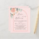 Een rozen gouden achtergrond met een rozen gouden en roze boog. Versierd met een rozen gouden en blozend roze bloemig, rozen bloem en groen waterkleurig eucalyptusgroen. Personaliseer en voeg de naam van de bruid toe om te zijn en feestdetails. Tekst: Liefde in bloei Terug: roos gouden achtergrond kleur. 1 vel = 1 uitnodiging afgedrukt rand tot rand.