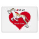 Laat iedereen weten dat je van je Grote Daan houdt (ongetuinde oren) met dit grote rode hart en een luipende dane met de tekst "I Love My Great Dane" van Danes-R-Us.