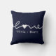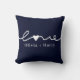 Love Hand Drawn Modern Minimalistisch Navy blauw en wit Sierkussen. Voeg stijlvol uw aangepaste namen toe aan dit elegante werpkussen