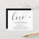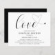 Een budget stelt een doucheuitnodiging met het woord 'liefde' in zwarte kalligrafie met een hartslag aan het eind, over een witte achtergrond. De eenvoudige en minimale lay-out en veel open ruimte geven dit ontwerp een modern gevoel en de kalligrafiettering en het hart geven het een romantische draai. Deze goedkope stelletjes douchen op papier voor een budgetvriendelijke optie.