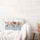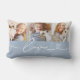 Moderne en stijlvolle, aangepaste lumbool werpt een kussendraaiontwerp met een foto-collage van drie (3) favoriete foto's met een eenvoudig en minimaal wit 'Love'-typografisch ontwerp dat levendige en hartdetails bevat. De blauw- en witte lichte chambray-kleuren kunnen worden gewijzigd.