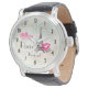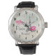 Een pols horloge met een mooie achtergrond met zwakke rozen en fleur-de-lis. Gelaagd over bovenkant is een illustratie van de eiffeltoren. Een roze lippenstift naast het beroemde landmerk dat xoxo zegt! en een fancy typografie die zegt: "liefde liefde liefde liefde" Parijs Bonjour! De tekst kan worden gewijzigd/aangepast aan uw behoeften.
