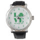 Love Shamrock Clover Irish Custom Text Groen Wit Horloge