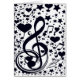 Zwarte muzieknoten met sterren en harten.