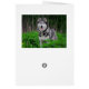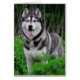 Deze leuke kaartje met een zwarte, witte en grijze Siberische Husky-hond die door de bossen loopt. De binnenkant van de kaart is leeg voor uw bericht.