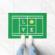 Love tennis court verwelkomt doormat voor een nieuw huis. Maak uw eigen douane binnenshuis/buitenmat met douane achtergrondkleur en tekst. Voeg uw eigen welkomstbericht, familienaam, achternaam, monogram initiaal letters of grappig citaat toe. Fun gift-idee voor nieuw clubhuis, thuis/huisverwarming, winkel, winkel, winkel, bedrijf kantoor, bedrijf, enzovoort. Moderne sporttypografie met gerechtelijke dimensies. Persoonlijke sjabloon. Creëer je eigen mat / tapijt voor de deur / de ingang of de hal aan de voorzijde . decor/decoraties voor uw huis. Een cadeautje voor een nieuwe verjaardag voor tennisspeler, enthousiast, fan, trainer, leraar, instructeur, coach, mam, vader, echtgenoot, echtgenote, vrienden, medewerker, enz. Extra groot formaat. Groene of aangepaste achtergrondkleur met witte lijnen. Geel tennisballtypografische ontwerp.