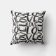 Een prachtige zwarte en witte typografische kussen. Het patroon bestaat uit de tekst 'liefde' in een modern en stijlvol lettertype. Dit zou een groot cadeau zijn voor bruidsmeisjes op een bruiloft, of als Valentijnsdag cadeau. Of een schattig minimalistisch decor-accent.