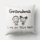 Love You Grandma Kids Art Personalized Gift Throw Pillow - A cheerful pillow Grandma will love to display on her couch, bed or favorite chair. Personalize her nickname — Grandma, Nana, Mimi, Gran or your own. A sweet everyday reminder of just how much the grandkids love her. Cute boy and girl stick-figure characters with arms stretched wide, drawn in a fun whimsical style with simple childlike typography. A clean, bold black-and-white graphic that feels like a child’s own art — sweet, cheerful and full of love.