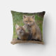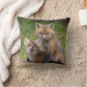Twee rode vosskits delen een moment net buiten hun hol.