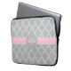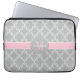 Lt Gray Pink White Moroccan Quatrefoil Monogram Laptop Sleeve