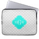 Lt Gray Polka Dots Brt Aqua Quatrefoil 3 Monogram Laptop Sleeve