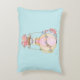 Een kussen met een schattig ontwerp met een illustratie van de waterverf. Een heteluchtballon met rode en roze bloemen. Een schattig klein wit baby beer zit in de mand. Lichtblauwe achtergrond.