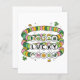 Een kleurrijke afbeelding van kralenarmbanden in groen, roze, geel en sinaasappel, met charmeachtige iconen zoals klavers, een hoefijzer, een kabouter pet, een goudpot, een regenboog en een boog. De centrale armband spelt "LUCKY" uit, waardoor het een leuk en feestelijk ontwerp is voor het vieren van St. Patrick's Day en het verspreiden van goede vibes.