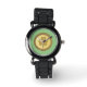 Dit geweldige horloge is voorzien van een grafisch afbeelding van een gouden munt met twee tinten goud. De buitenste cirkel heeft een ruwe structuur. In de binnenste cirkel van de munt bevindt zich een getextureerde gouden shamrock bestaande uit 3 bladeren en een stengel.