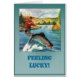 Vist op de rivier, vangt een zalm, een vintage-imago.