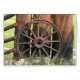 Old western wagon wheel with lucky horseshoes foto greeting card. Great for Fathers day or old but still great masculat birthday