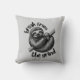 Een kussen met de tekst "Pauzeer even" in vetgedrukte letters, vergezeld van een afbeelding van een ontspannen luiaard, die een langzaam, zorgeloos leven en het belang van tijd voor jezelf symboliseert.