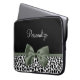 Een elegant zwart-wit luipaard print patroon met een donkergroene satijnen strik. Personaliseer dit meisjesachtige dierenprint ontwerp door de naam van je favoriete meisje toe te voegen. De strik is een digitaal afbeelding, geen echt lint.
