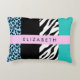 Luipaard Print, Zebraprint, Blauw, Jouw naam Accent Kussen