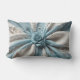 Elegant lumbaal kussen met een prachtig blauw roos gewikkeld in delicaat gedrapeerde satijnachtige stof. Subtiele bloemenborduurachtige details verbeteren het luxe ontwerp, waardoor het perfect is voor het accentueren van banken, bedden of leeshoekjes. Ideaal voor een romantisch, shabby chic of geïnspireerd interieur