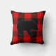 Rustic lumberjack buffalo check patroonkussens perfect voor landhutdecor- Silhouette van een zwart beer met een robuuste jumborode en zwarte buffelvlakke ondergrond. Hetzelfde aan beide zijden. Preppy primitief decor voor een bijtende blokhut of jongens kamerdecor.