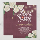 Lunch & Bubble / Brunch & Bubble Vrijgezellenfeest / Wedding Celebration Invitation Kaart Sjablonen - Elegant White - mooie Waterverf Hydrangea Flowers en String Lights op Burgundy Red Background Een perfect ontwerp voor je grote dag! Alle tekststijl, kleuren, grootten kunnen worden aangepast aan uw behoeften.