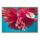 Kleurenfoto van een drievoudige, rode hibiscus in mijn tuin. Groene grens boven en onder.