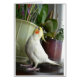 Schattige lutinocockatiel die naar bladeren van plant reikt