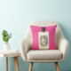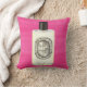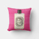 Dit kussen bevat een origineel schilderij van kunstenaar Anne Harwell van een klassieke Franse parfumefles met zwart pet op een frambozengekleurde achtergrond. Het ontwerp staat zowel voor als achter.