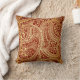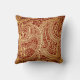 Gouden en rode decoratieve paisley en bloemenprint tegen een rode achtergrond.