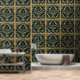 Transformeer je ruimte met dit moderne, elegante en stijlvolle behang, met een luxueuze malachiet stenen textuur in rijk smaragdgroen en goud. Geïnspireerd door Art Deco-design, toont het een Grieks mandala-patroon, vintage damast bloemmotieven en abstracte oude grunge-elementen, waardoor een retro maar trendy esthetiek ontstaat.