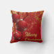 Dit elegante sprankelende kerstkussen heeft een verfijnd ontwerp in goud en rood. De traditionele rode kleur van Kerstmis. Het middelpunt van het ontwerp bevat ronde ornamenten naast de zin "Merry Christmas." Het is een aanvulling op het decor van de gouden, witte en rode kerstkamer, waardoor het perfect is voor Luxe-decoratiestijlen.