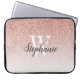 Voeg een aanraking van glamour toe aan uw laptop met dit chemische sleeve, met een achtergrondpatroon van roos gouden ombre faux glitter. Personaliseer het met uw initiaal in witte serif doopvont en jouw naam in het handschrift-stijl van de houtskool grijs borstelmanuscript.