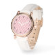 Een horloge met een mooi vrouwelijk patroon. Zacht roze patroon in gezwollen diamantvormen met een gouden kraal in het midden. Luxe elegantie vibe.
