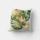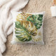 Mooie en zeer decoratieve gooikussens met goud en groene waterverf monstera laat illustratie op een witte achtergrond.