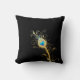 Maak een mode statement met dit trendy pauwenveren kussen met een sierlijke gouden pauwenveer met een uniek blauw hartvormig pauwenoog tegen een effen zwarte achtergrond.