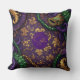 Luxury Mardi Gras Carnival Pillow with ornate Masquerade masks, beads and Fleur-de-Lis Pattern for celebration. The swirling ornamental patterns add a sense of motion and festivity, reminiscent of dancing crowds, lively music, and floating confetti. In the center is text that can be personalized with your Name or Monogram. You can also remove it if you want only the pattern.