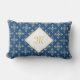 Een luxe blauw en goud vierpunts bloemenpatroon lumbaal kussen dat kan worden gepersonaliseerd door uw monogram toe te voegen. Dit elegante monogrammed damask-ontwerp brengt zeker uw verfijnde kant naar boven. Vlak bedrukt afbeelding, niet van metaal.