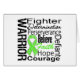 Lymfoom Warrior awareness t-shirts, merchandise & gifts met een collage die de kenmerken van een kankerstrijder beschrijft. Het ontwerp kenmerkt tekstattributen van een krijger met inbegrip van de woorden Vogelaar, Bepaling, Onverschrokken, Geloof, Vertrouwen, Hoop, Verdediging en Gloed. Dit ontwerp wordt geschikt in een koel, kalkvormig, groen lint, collage tekst met gemengde stijldoopvonten die een uniek karakter aan het ontwerpelement verstrekken.