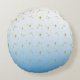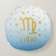 Aangepaste ronde kussen voor "Maagd" met gouden sterrenbeeld en gouden sterren, met blauwe en witte gradiënt achtergrond.