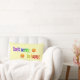 Multicolored tekst en gele glimlach gezichten op een bleke gele achtergrond.