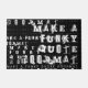 Eenvoudig te gebruiken sjabloon van de slaapstand. Gebruik deze sjabloon om uw eigen gepersonaliseerde zwart-witte funky quote doormat te ontwerpen. Cool, funky urban grunge stijl typografie woord collage. U kunt aanpassen door uw eigen citaat te creëren door het verstrekte gebied te gebruiken. U kunt op verder aanpassen klikken om de achtergrondkleur te veranderen, andere doopvonten te selecteren om uw smaak aan te passen, of de "contact deze ontwerper"knoop hieronder voor hulp te gebruiken. Een leuke, unieke toevoeging aan je decor, of een doordacht geschenk voor hem of voor haar.