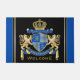 Creëer je eigen aristocratische laag van wapens, embleem, insignia of Family Crest met dit prachtige, klassieke ontwerp of schild. Kobalt Blue strepen versieren een schild dat met een gouden kroon is bedekt en wordt geflankeerd door middeleeuwse heraldische leeuw of griffine. Een passende bovenste banner houdt je huwelijksdatum / geboortedatum / slogan of strijdkreet bij. Het schild heeft ruimte voor je monogram initialen. De onderste banner draagt je familienaam. Er is ook ruimte hieronder voor uw favoriete offerte, motto of bericht. Vervang de steekproeftekst met uw voor een gepersonaliseerd cadeau. Ik heb dit ontworpen om te werken voor gezinnen, paren en individuen. Het maakt een prachtig cadeau voor Internationale Heraldry Dag, Mideval of Fantasy-themed parties, Wedding, Jubileum, Birthday, pensionering, promotie, vaderdag, bachelorpartij, bruiloft, Afstuderen en andere speciale gelegenheden.