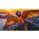 Mooi Macaw horloge met een schattige papegaai cirkelt in vreugde boven Rio De Janeiro bij zonsondergang. Moge het geluk van de vogel zich verspreiden in je leven. Kleuren we jouw wereld !!
