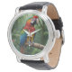 Dit prachtige horloge is voorzien van een kleurrijke ara papegaai in een magisch oerwoud.