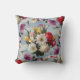 Het is een werpkussen met een illustratie van een verscheidenheid aan bloemen. Er zijn rozen, madeliefjes, lelies en tulpen in verschillende kleuren zoals rood, wit, geel en roze. De bloemen zijn in een cirkelvormig patroon gerangschikt, met de grootste bloemen in het midden en de kleinere bloemen worden geleidelijk kleiner naarmate ze naar buiten bewegen. De achtergrond is een lichtblauwe lucht met pluizige witte wolken.