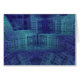 Deze 3D teruggegeven fractal kenmerkt een complex en ingewikkeld patroon van kubussen en abstracte geometrische design in schaduwen van blauw.