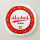 Badge van Madrid met vlag van Spanje kleuren, afgeronde vorm. Embleem van Madrid.