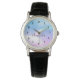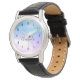 Een horloge met een zacht en mooi achtergrondafbeelding. Pastel blauw en roze wolken met een magische regenboog.