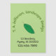 Groen blad met bedrijfsinformatie. Vervang groen grafisch blad met uw bedrijfs logo. Boven het blad is een lijn gekromde tekst in groen. Onder is plaats om met adres en telefoonaantal in zwart te personaliseren. Bleke groene achtergrond kan ook worden aangepast.